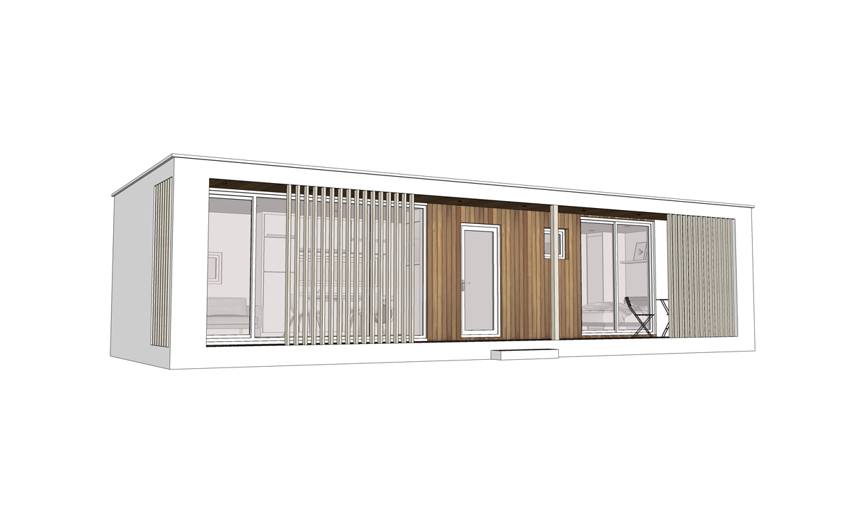 깔끔한 화이트베이스에 우드사이딩 포인트를 넣은 직사각 박스형태의 중고급형 주택으로 단순하지만 정확한 동선설계로 실 구성.
