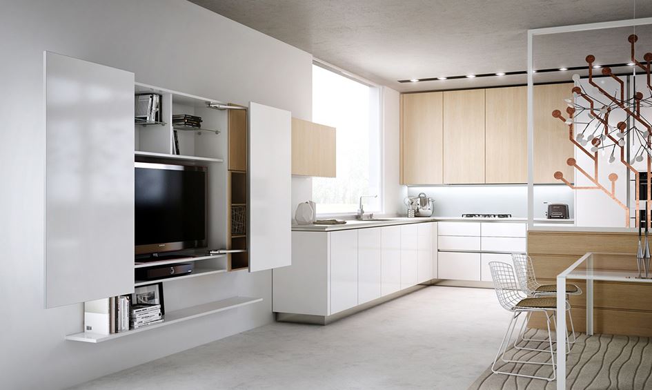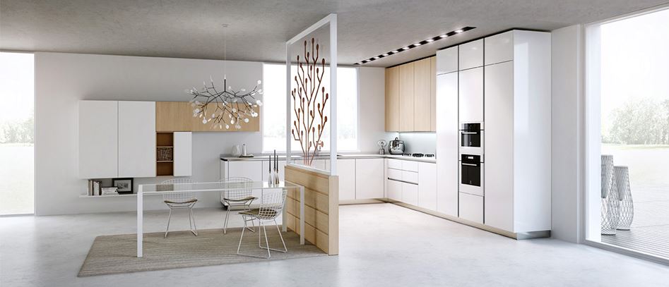 주방의 전체적인 컬러톤은 화이트로 유지하고 포인트컬러 천연우드를 사용하여 편안한 품격이 느껴지는 공간으로 완성.